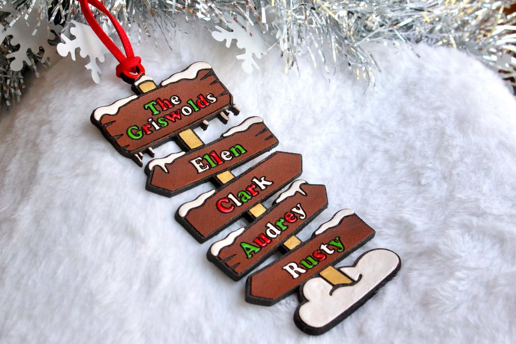A Very special North Pole Sign ornament for the whole family! This is a special piece that is custom made with your loved ones names - please send us a message or get in touch via Instagram and we can design it together! It’s shown with 7 family members names but we can add anywhere from 2 to 7!
