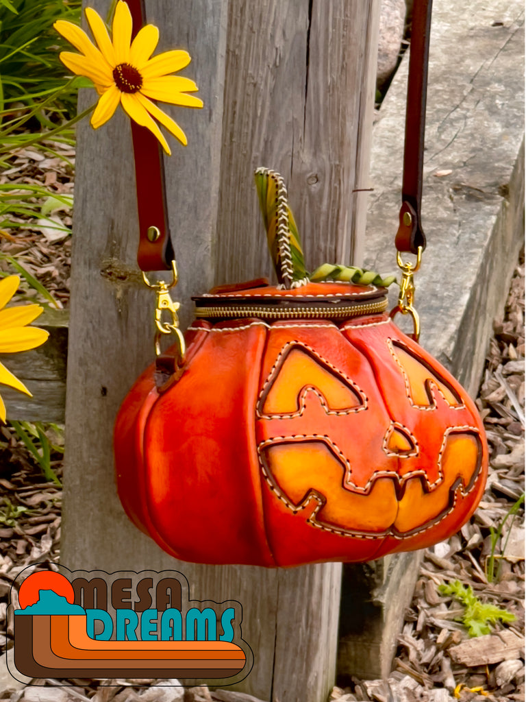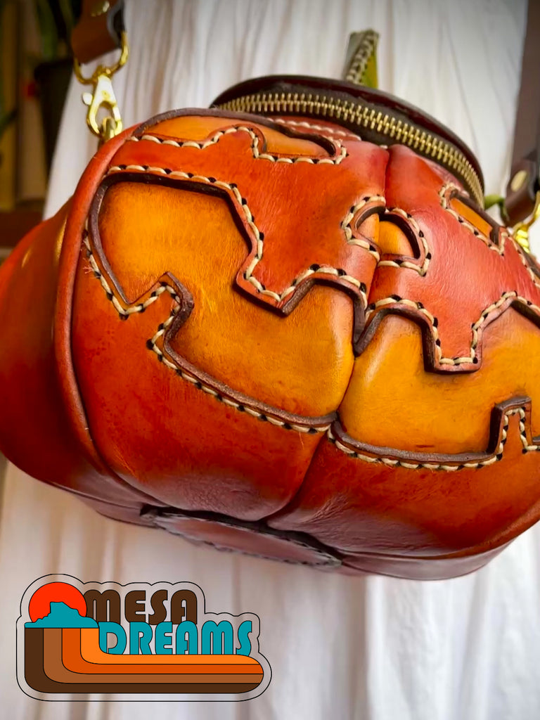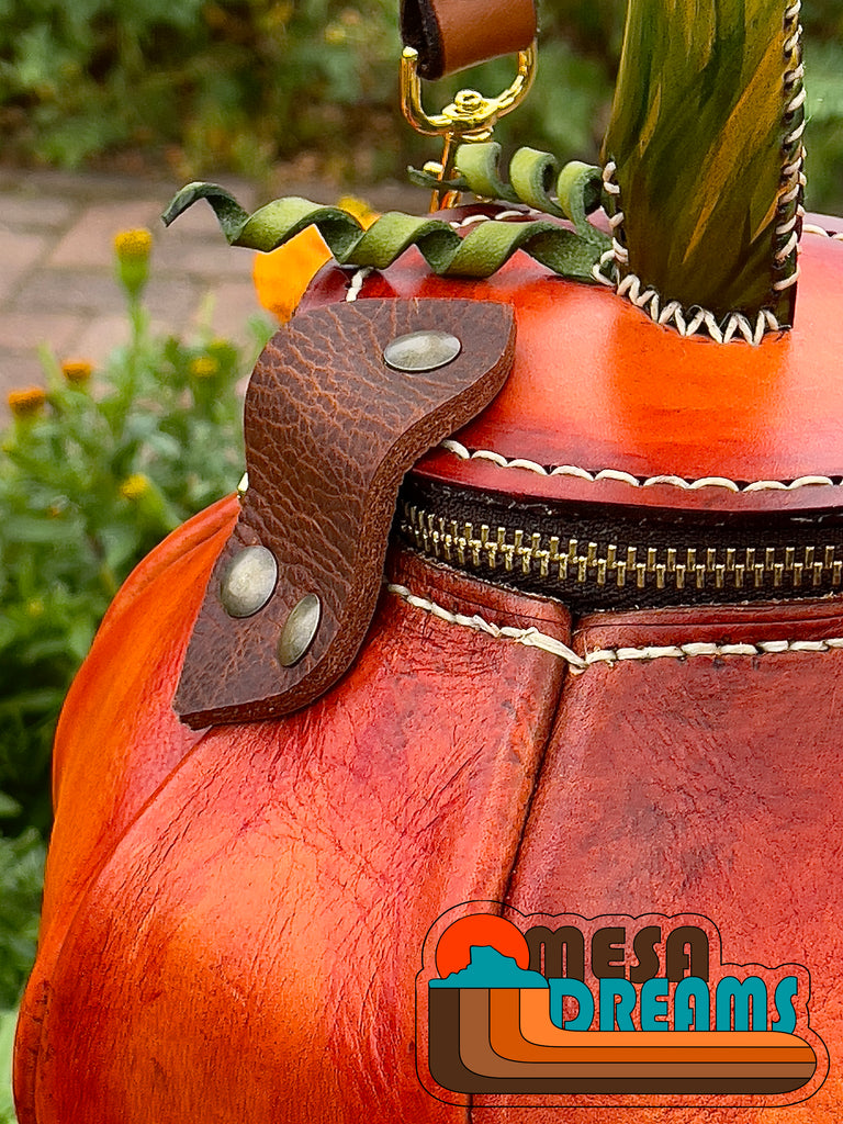 šA special note - you may have found our shop by first seeing a confusing and questionable ad on Facebook that said they were selling the bag you see in my photos for about $35. They have stolen all my photographs and videos - used the text from my listing here and on Instagram, Facebook and TikTok to scam buyers. Their ad and linked site show my bag, even including the Mesa Dreams logo I made and sewed onto the lid. I have heard from people who were duped into checking out with this fraudulent site that they were soon after spammed with weird emails out of China and had to cancel their credit cards. I do not believe this is a site like Temu where you get a cheap, poorly made replica of my handmade work - I believe it is a phishing site designed to steal your personal information. Thank you for taking the time to search for me and find your way here. As an artist and small business owners, this has been deeply hurtful and scary for my husband and myself. We are incredibly grateful to the wonderful people who have reached out and gone the extra mile to find us and place an order for a lovingly handcrafted, genuine leather pumpkin bag.Ā